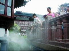那些旅游景区的喷雾系统原本计划作为降温设备,但在许多游客眼中,这更像是一个人造雾景观设施。它可使您如临深山,回归自然,如入仙境,提高人文及自然景观造雾的造景效果显著,起画龙点睛之笔。景观造雾能极大的增加空气中负氧离子的含量,无蚊蝇叮扰,极大地营造和改进人类生存和居住环境。不少游客利用水雾刚刚喷出的时机在桥面上拍照留影。